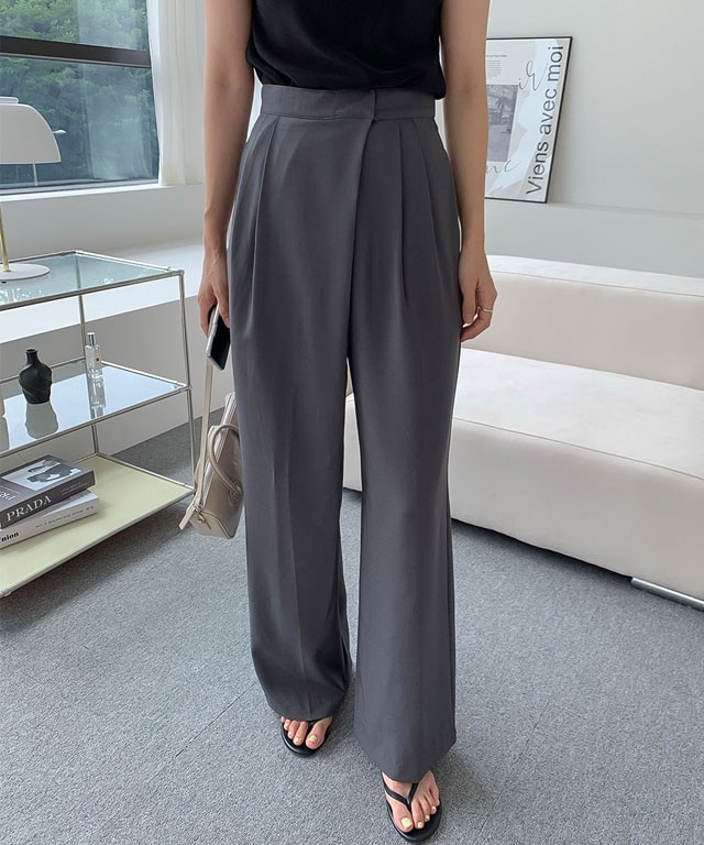 ベルリン 斜め アンバランス ワイド ピンタック スラックス
