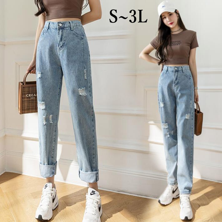 【特価】パンツ レディース デニムパンツ ジーンズ ジーパン ダメージ加工 美脚 クラッシュ ダメージ ゆるい ボトムス 春夏秋 9分丈 大きいサイズ S M L 2L 3L
