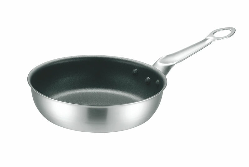フライパン 27cm IH対応 深型 ステンレス製 キングフロン ノーメイクフライパン 中尾アルミ ガス火対応 オール熱源対応 炒め鍋 いため鍋 金属ヘラOK 27センチ ステンレスフライパン